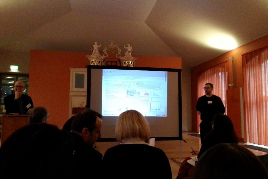 On December 02, 2019 we were invited to present SHRIMP at the Digital Humanities Day organized by the Forum Digital Humanities Leipzig (Uni Leipzig), which took place this year at the Grassi Museum. As part of a poster slam, we presented SHRIMP and the current project status - all in just sixty seconds! Visitors who were interested in a more detailed introduction to the project after this little and compact "appetizer" could visit us at a poster exhibition afterwards. Exciting concept, interesting audience and beautiful location - thank you for the invitation!